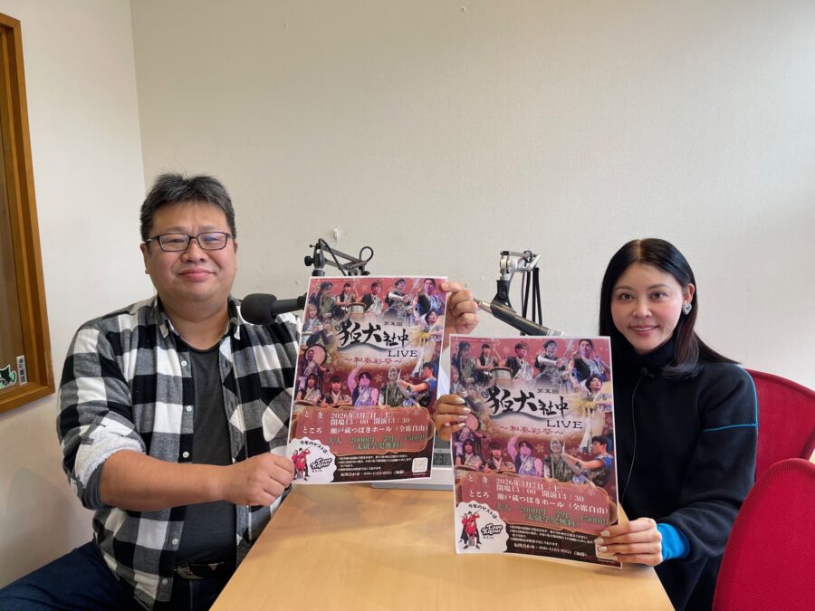 水曜ココカラサンキューに3月7日に瀬戸蔵つばきホールで「狛犬社中LIVE 和奏彩祭」開催される狛犬社中の加藤さんにご出演頂きました。